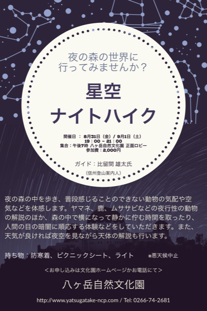 集合:19:00 八ヶ岳自然文化園 正面ロビー
