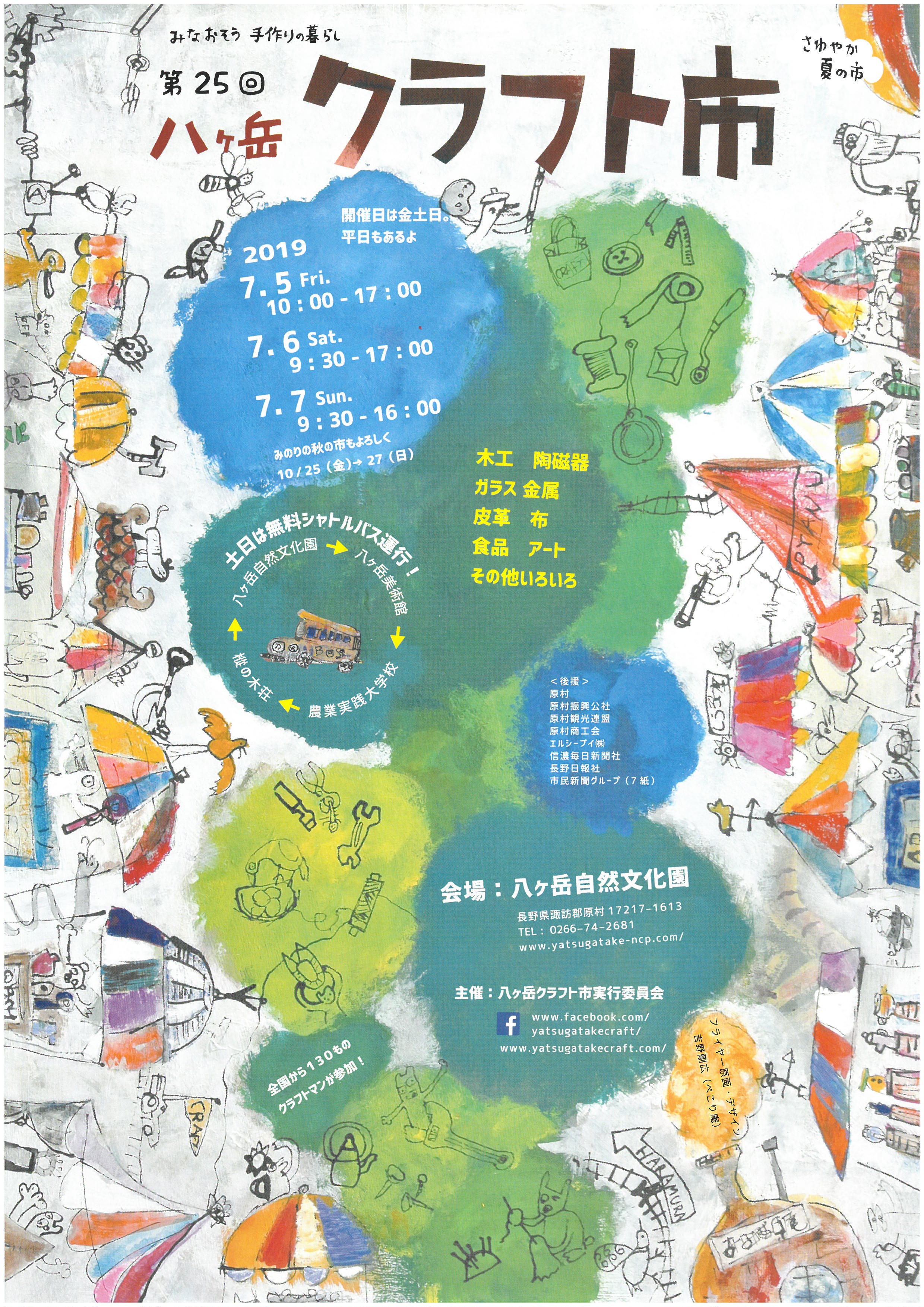 ・シャトルバスの時刻表やイベントの詳細は、八ヶ岳クラフト市ホームページ・フェイスブックでご確認ください。