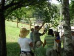 園内の樹木を解説しながら、葉っぱを採取して図鑑作りをします。
