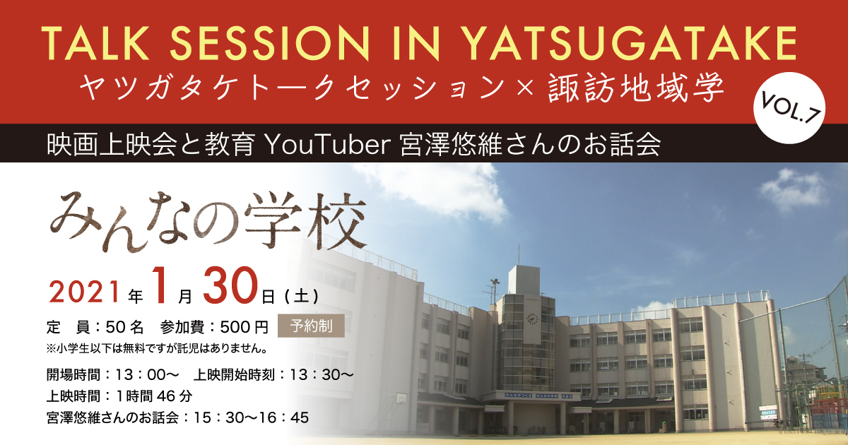 未来を担うこどもたちをどのように支えることができるでしょうか?大胆な改革で日本中から注目されている大空小学校のドキュメンタリーを鑑賞し、原村でより良い教育の研究と普及に挑戦している元教員YouTuber の宮澤悠維さんをゲストにみんなで考えて行きましょう!