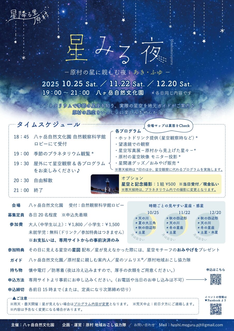 原村の星空を楽しむイベント「星みる夜:あき・ふゆ」の開催のお知らせです!